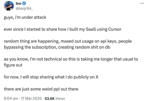 2 days after, he disclosed that a couple of things went wrong with his product. People found his api keys (since he actually shared a photo or a video), people bypassing subscription without paying and others.