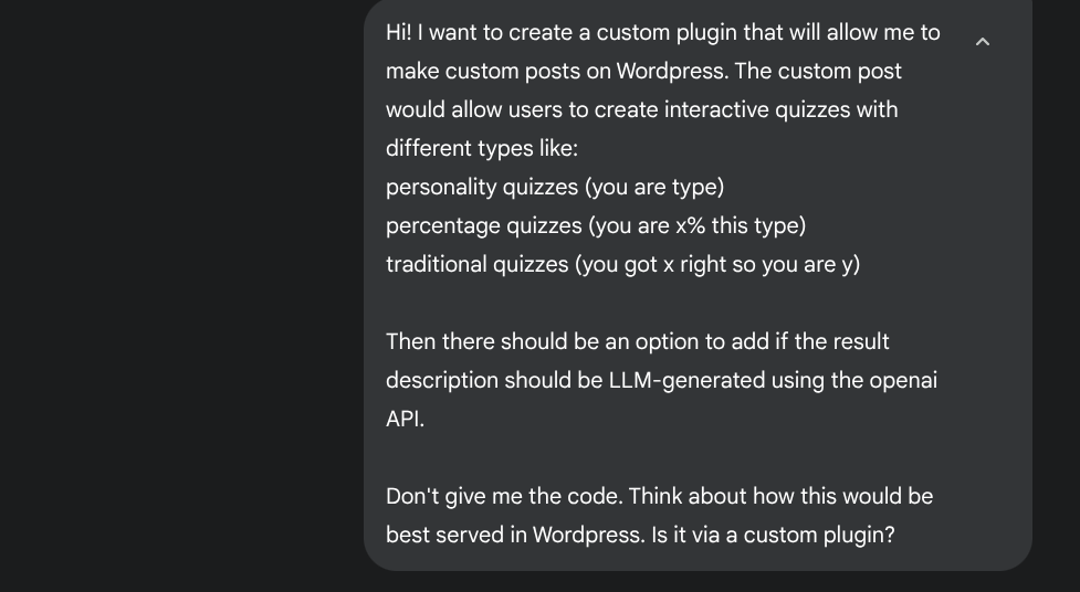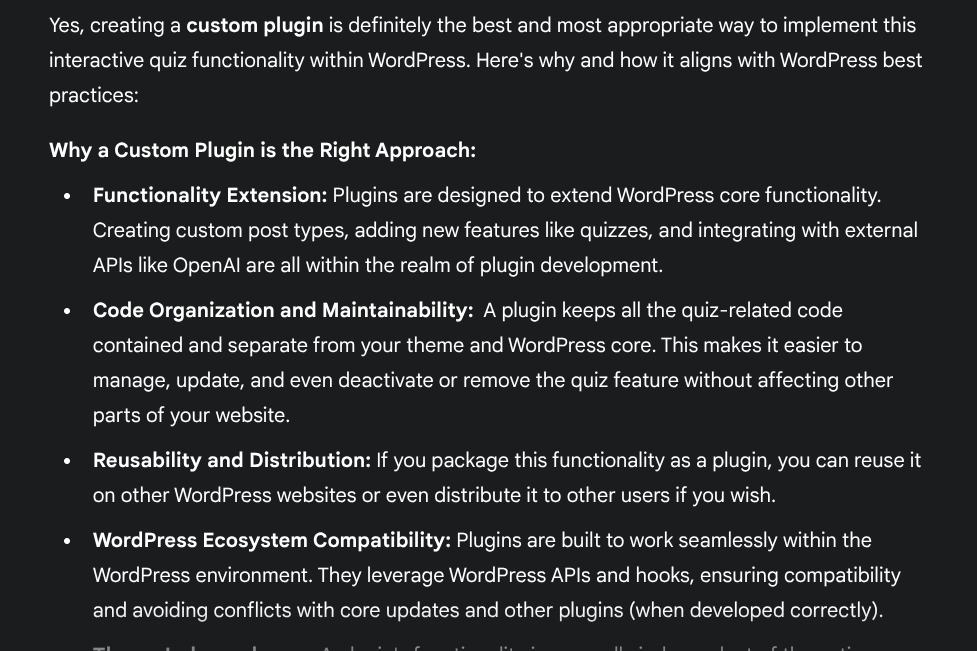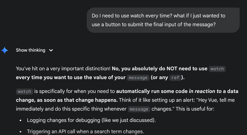 It somehow validated that I was kinda in the right track. For items like these, you can definitely ask more questions. Just do not ask it to build it for you.
