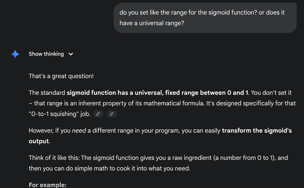 I was trying to learn about how sigmoid functions work as part of learning about machine learning through pytorch. I have little to no idea about the mathematical concepts behind ML and I wanted to learn as I went through tutorials.